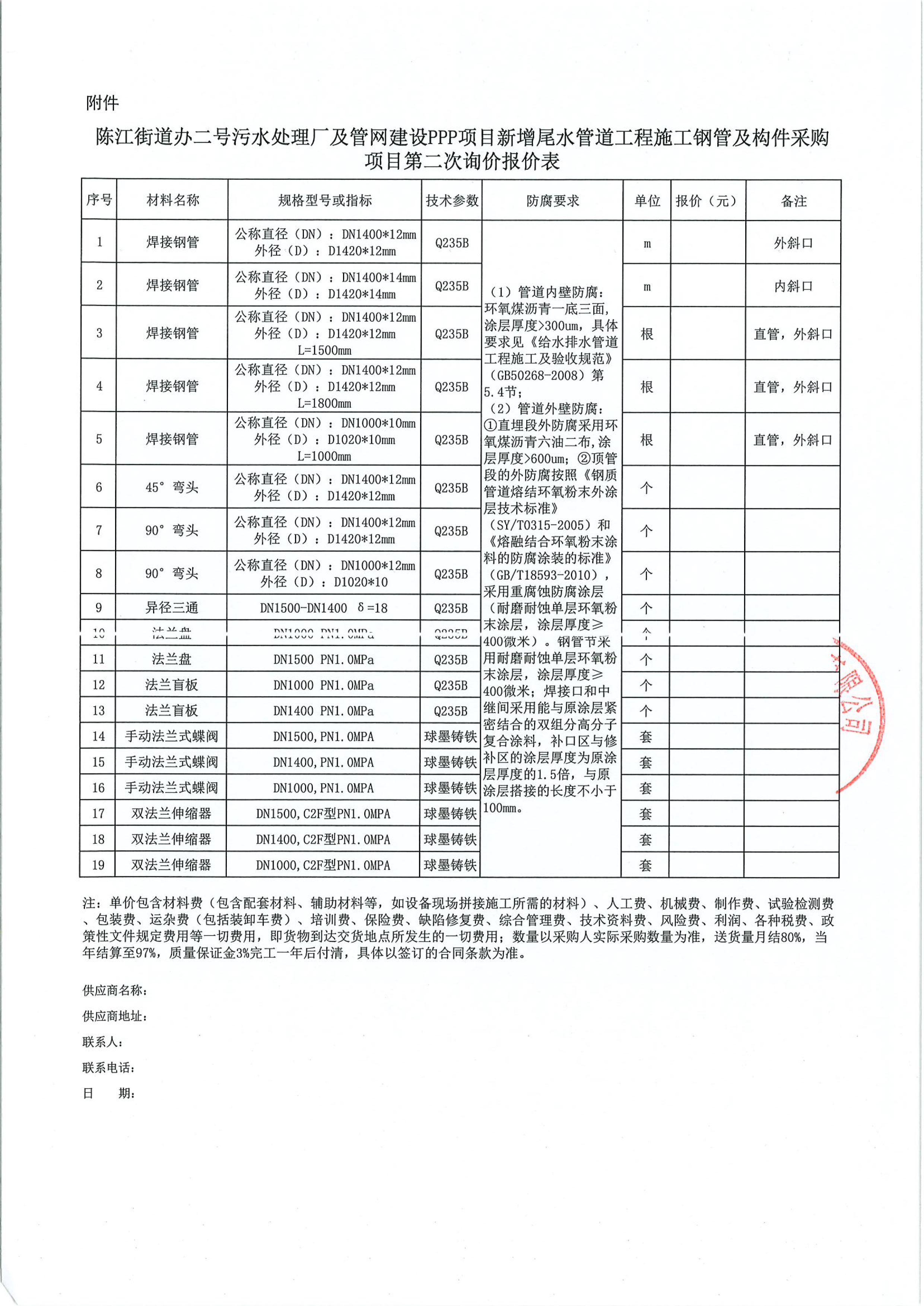 陳江街道辦二號(hào)污水處理廠及管網(wǎng)建設(shè)PPP項(xiàng)目新增尾水管道工程鋼管及構(gòu)件采購(gòu)項(xiàng)目第二次詢價(jià)公告附件: