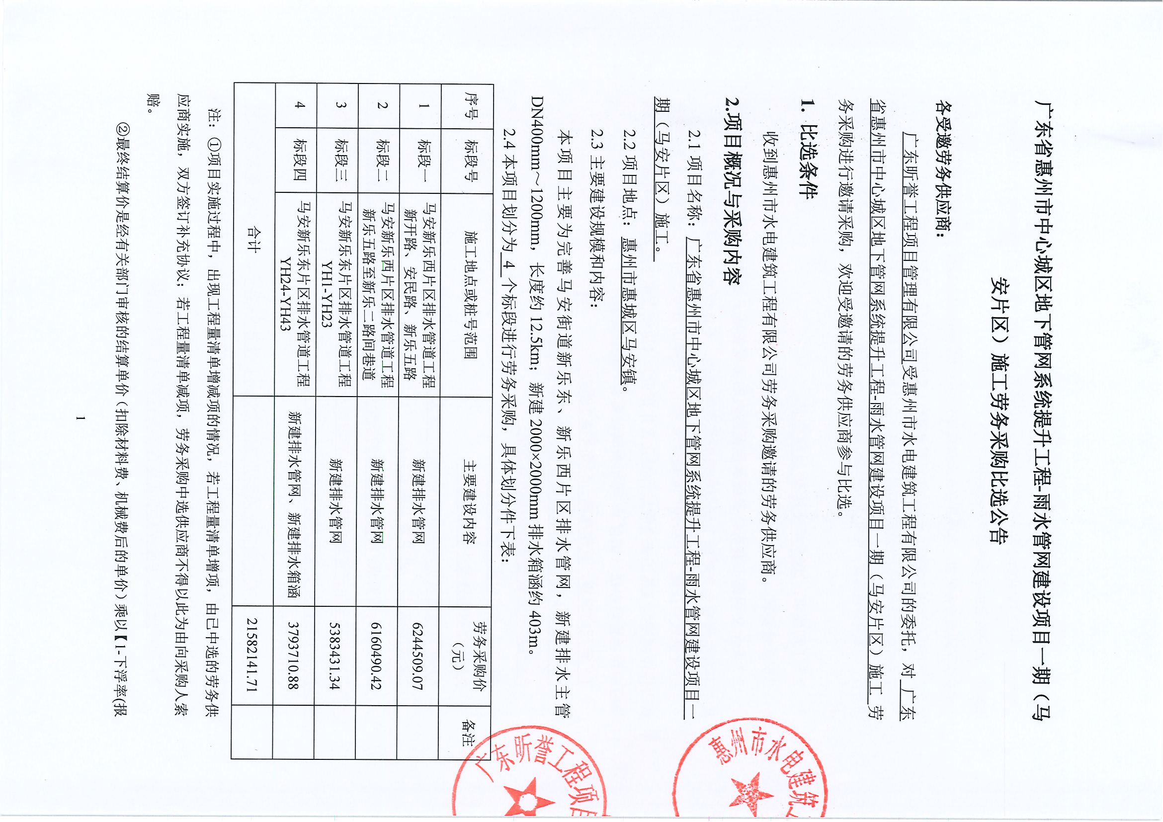 廣東省惠州市中心城區(qū)地下管網(wǎng)系統(tǒng)提升工程-雨水管網(wǎng)建設(shè)項目一期(馬安片區(qū))施工勞務(wù)采購比選公告