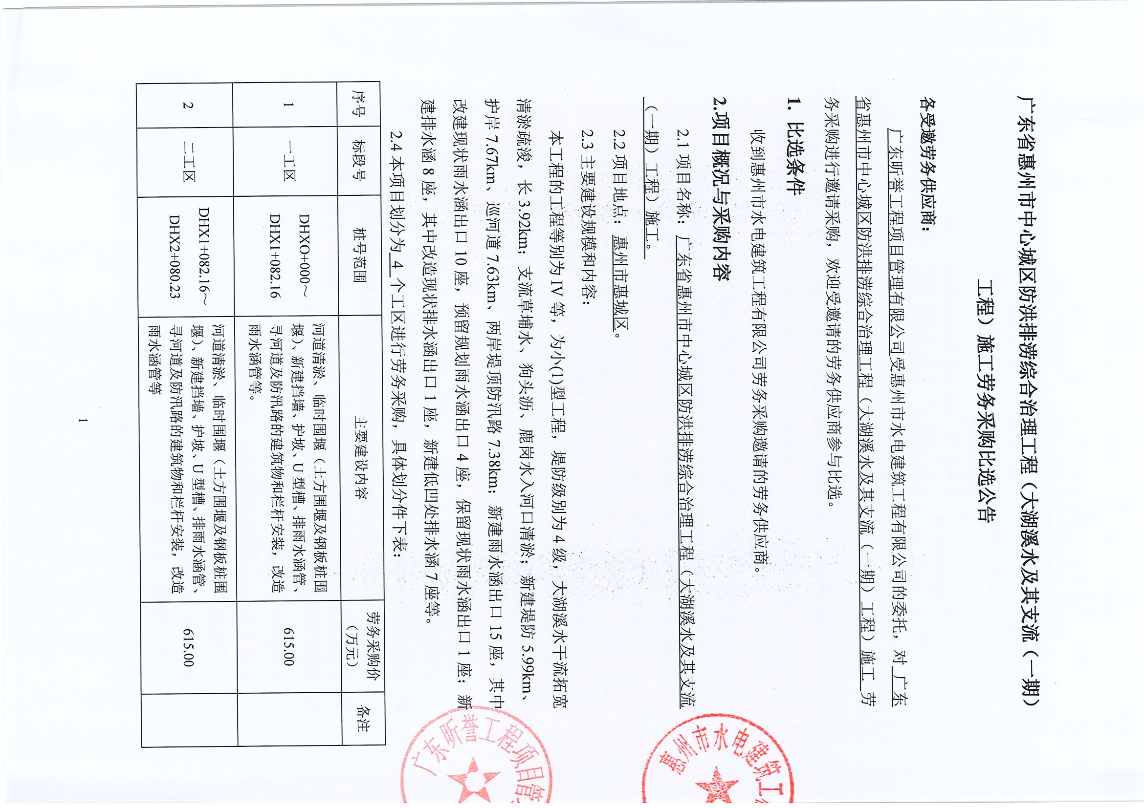 廣東省惠州市中心城區(qū)防洪排澇綜合治理工程(大湖溪水及其支流(一期)工程)施工勞務(wù)采購(gòu)比選公告