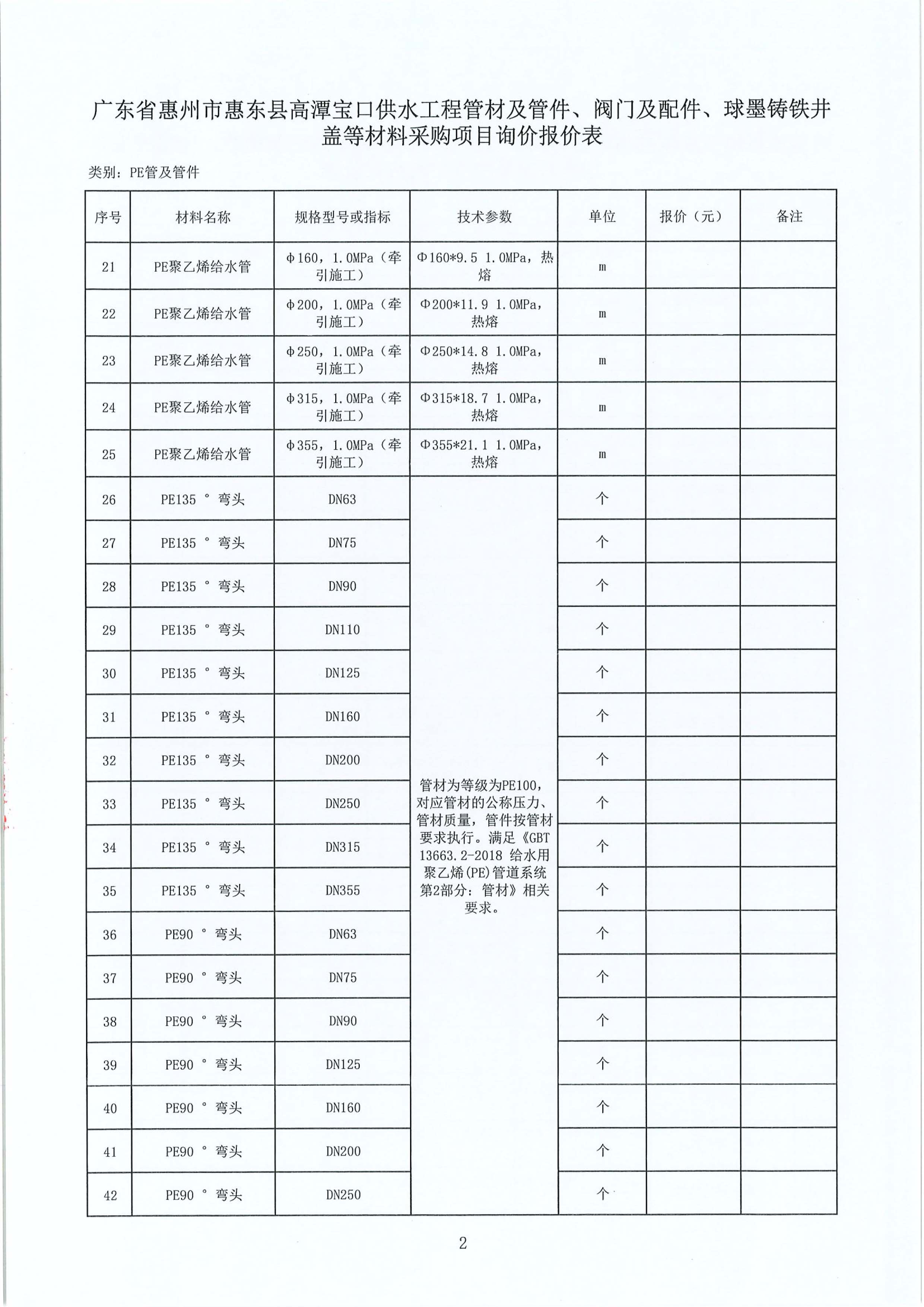 附件:廣東省惠州市惠東縣高潭寶口供水工程施工管材及管件、閥門及配件、球墨鑄鐵井蓋等材料采購項目詢價報價表