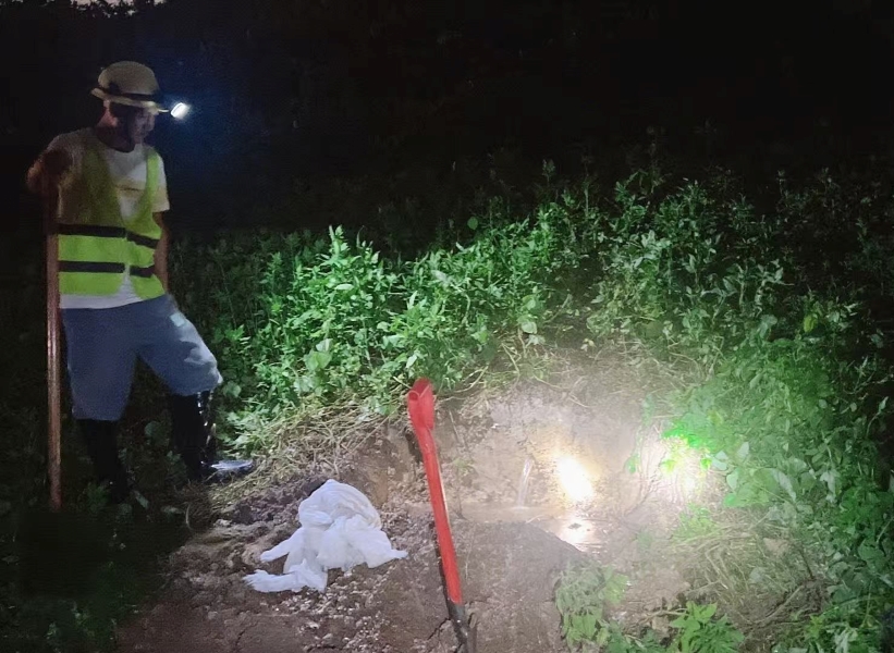 高效協(xié)同,凝聚搶險合力。公司調(diào)度60多名搶險隊員和技術(shù)人員,皮卡車、指揮車輛及后勤保障車共9輛抵達(dá)現(xiàn)場并開展安全技術(shù)交底,立即做好工作分工與應(yīng)急處置措施。在現(xiàn)場,因連日暴雨河水高漲,背水坡面因滲流作用出現(xiàn)多處涌水現(xiàn)象,如不及時處置,將引發(fā)滲透破壞,堤壩有坍塌風(fēng)險。20點(diǎn)54分,搶險戰(zhàn)役正式打響,整個搶險過程持續(xù)2小時,到晚上11點(diǎn)成功處置管涌點(diǎn)12處,圓滿完成全部搶險任務(wù)。