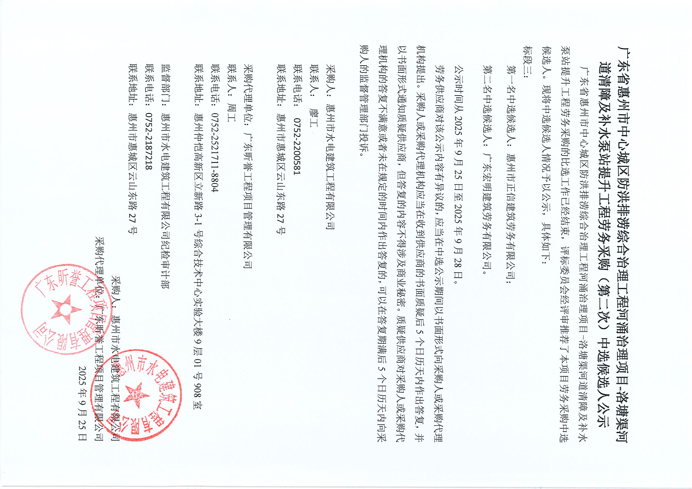 廣東省惠州市中心城區(qū)防洪排澇綜合治理工程河涌治理項(xiàng)目-洛塘渠河道清障及補(bǔ)水泵站提升工程勞務(wù)采購(第二次)中選候選人公示
