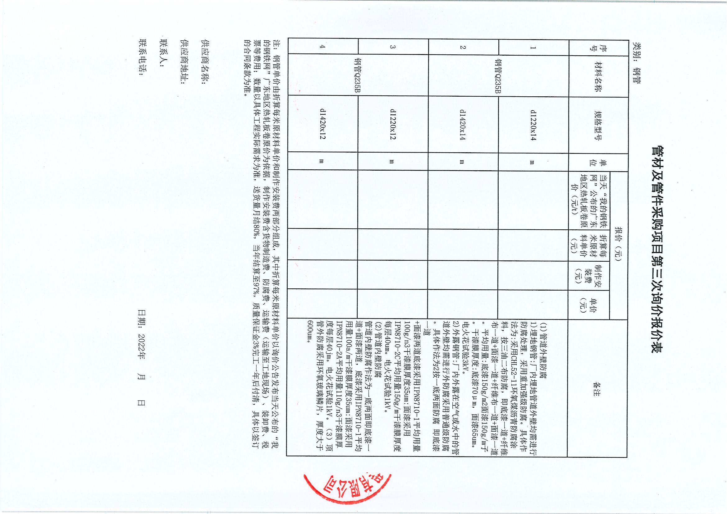 管材及管件采購項(xiàng)目第三次詢價(jià)公告