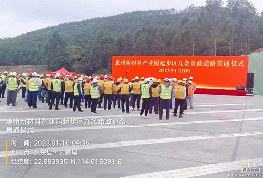 2023年1月10日,惠州新材料產(chǎn)業(yè)園起步區(qū)九條市政道路貫通儀式舉行,惠州市水務(wù)集團(tuán)有限公司黨委副書記、副總經(jīng)理劉世通,惠州市水電建筑工程有限公司黨委書記、董事長鄭海強(qiáng)參加了道路貫通儀式。本次道路貫通儀式的如期舉行標(biāo)志著園區(qū)內(nèi)9條市政道路順利完成建設(shè)計劃建成貫通,其中,惠州新材料產(chǎn)業(yè)園市政道路項(xiàng)目三號標(biāo)由惠州市水電建筑工程有限公司負(fù)責(zé)施工建設(shè),經(jīng)過數(shù)月攻堅,市水電公司保質(zhì)保量,按時完成施工建設(shè)任務(wù),實(shí)現(xiàn)道路貫通目標(biāo)。