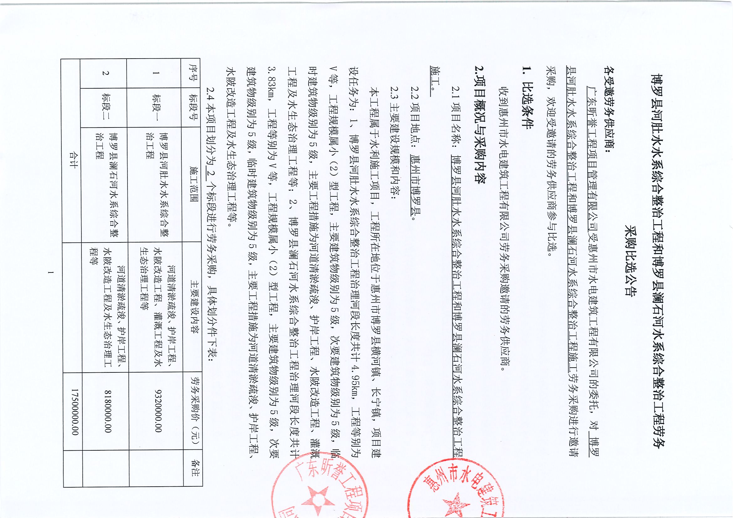 博羅縣河肚水水系綜合整治工程和博羅縣瀾石河水系綜合整治工程勞務(wù)采購比選公告
