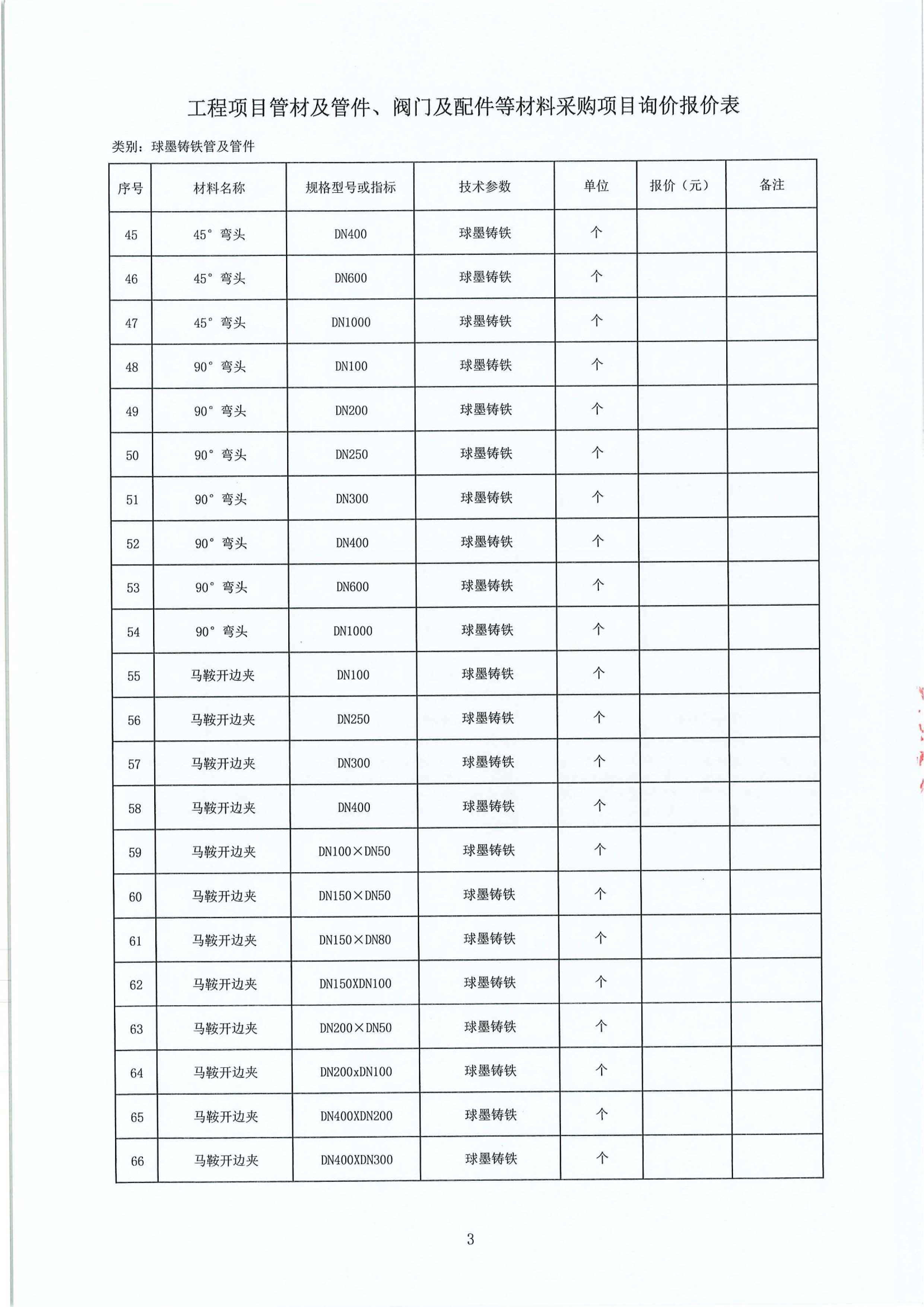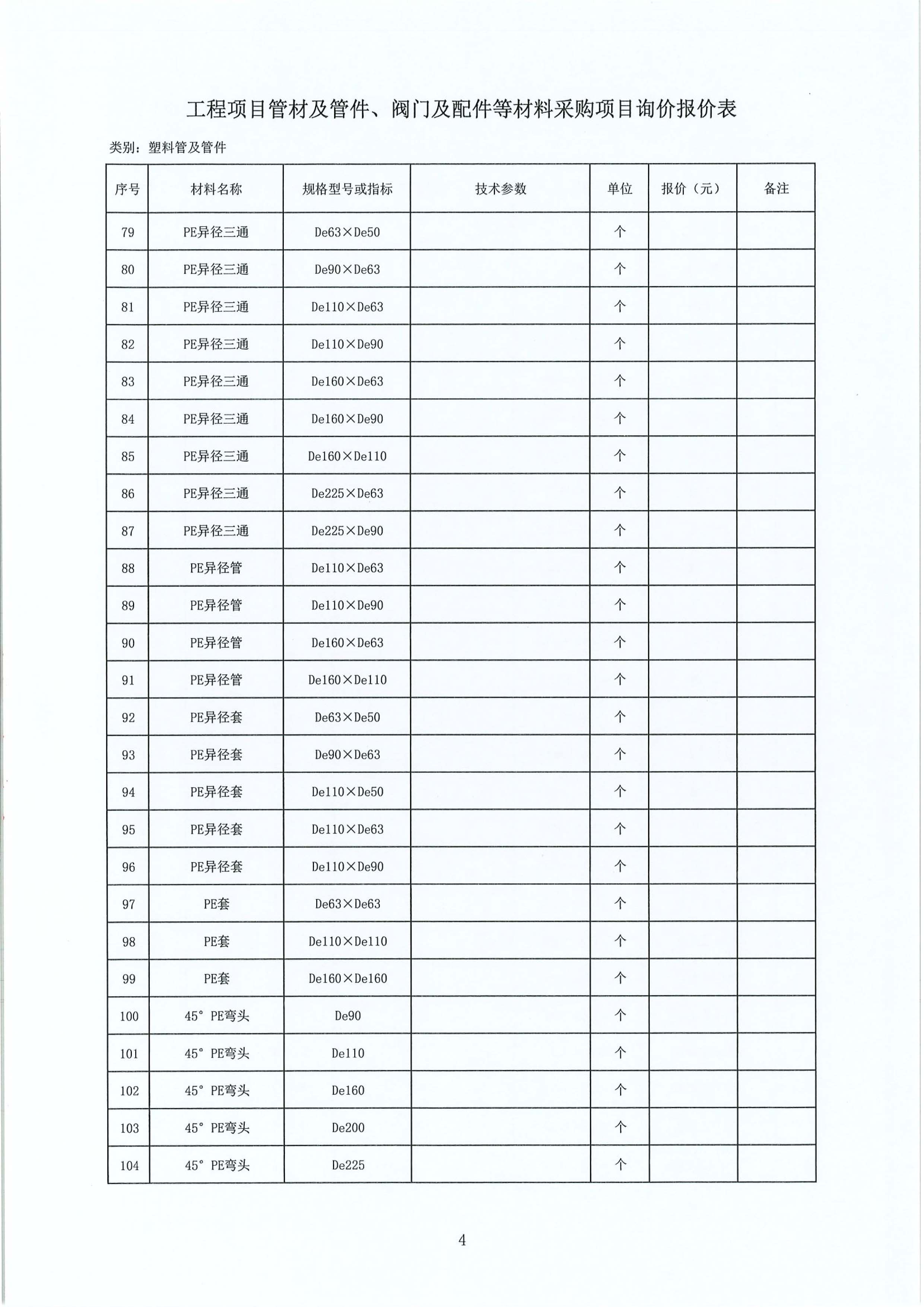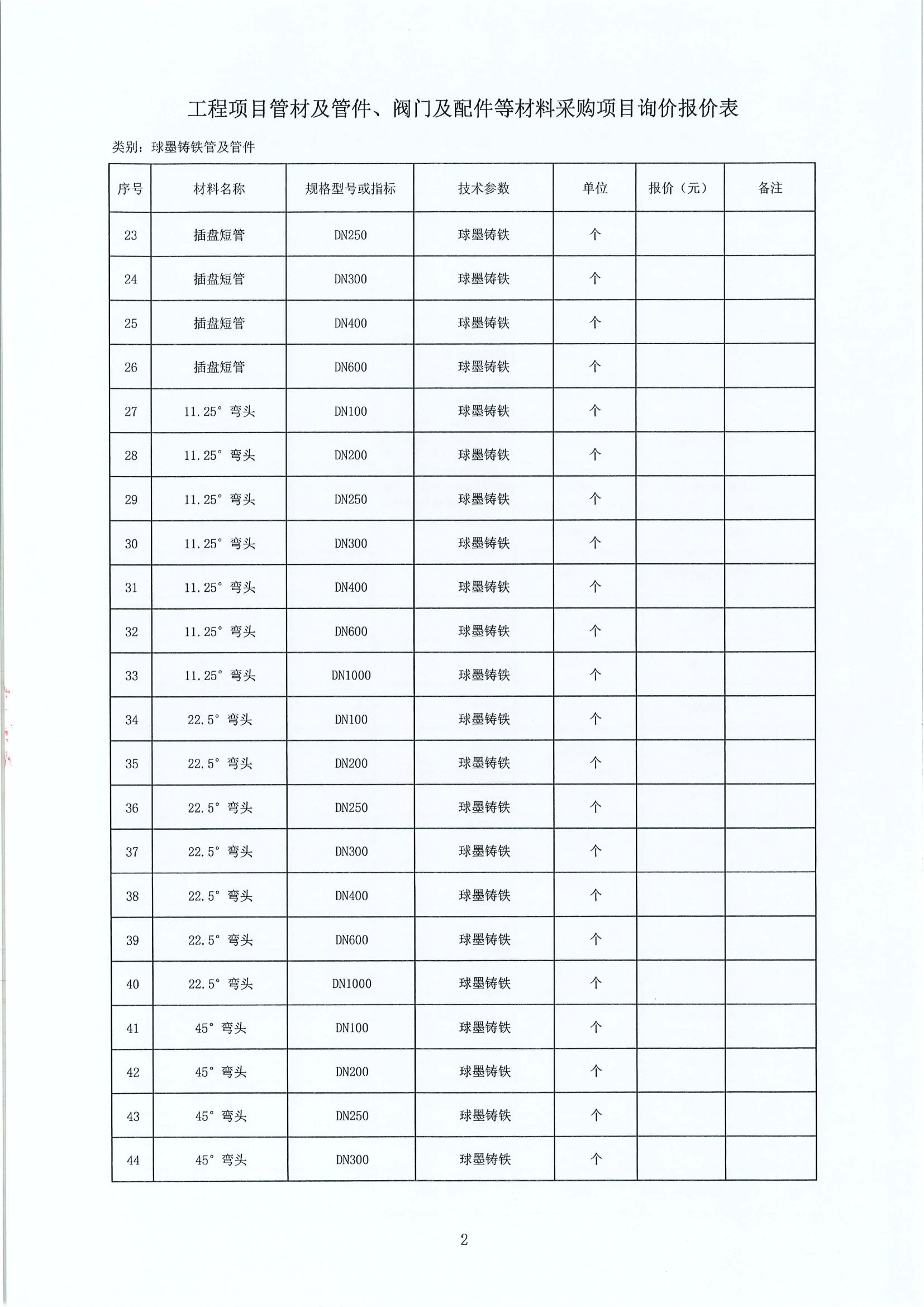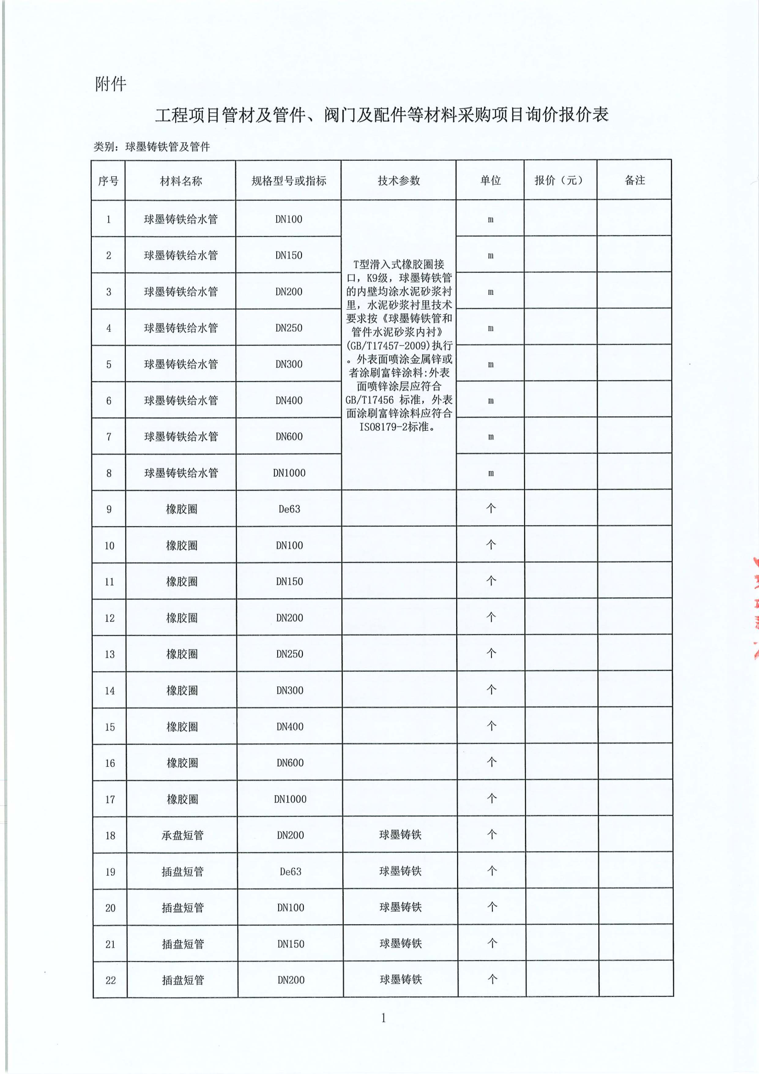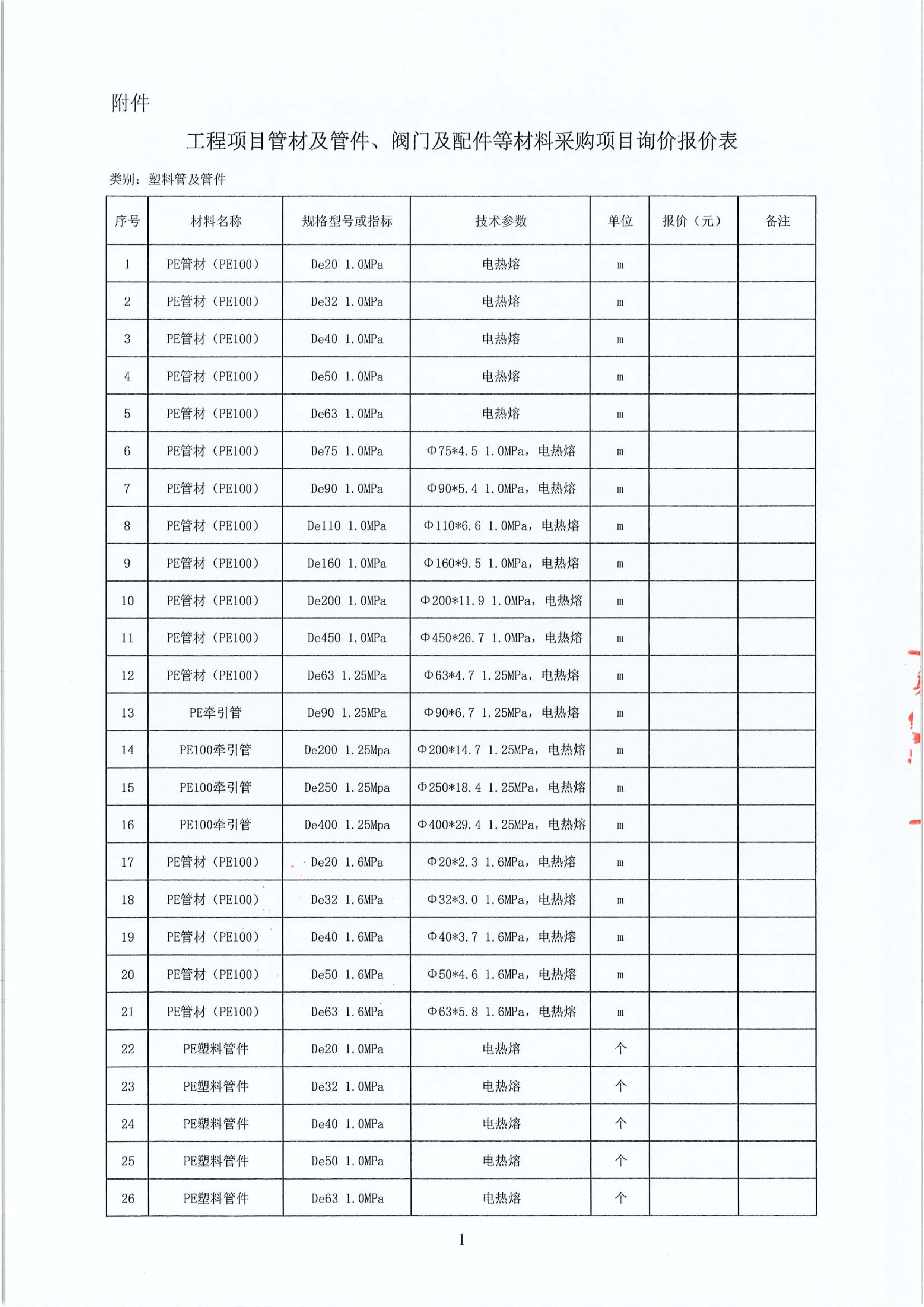 附件:工程項目管材及管件、閥門及配件等材料采購項目詢價報價表