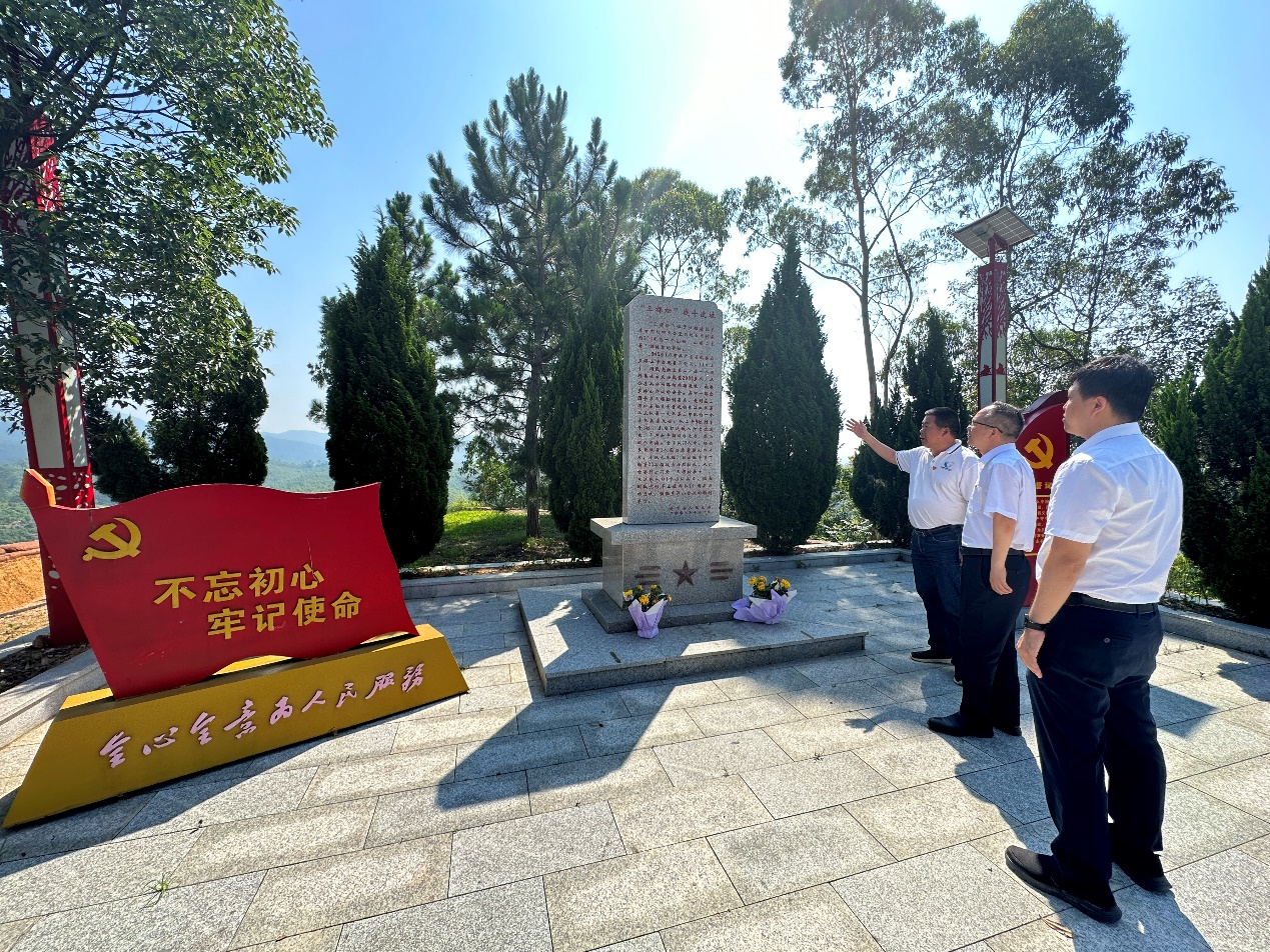 在石崗村,劉世通一行首先到三棵松戰(zhàn)斗遺址瞻仰,追尋紅色足跡,接受深刻的心靈洗禮和革命傳統(tǒng)教育,共同追憶“三棵松壯士”堅(jiān)守信念為黨和人民事業(yè)鞠躬盡瘁的感人故事,并帶領(lǐng)大家重溫入黨誓詞,緬懷革命先烈。隨后走訪了“百里茶香”示范帶,感受鄉(xiāng)村振興項(xiàng)目的建設(shè)成效;集中參觀了廉政園、石崗村戰(zhàn)斗會(huì)址,進(jìn)一步重溫初心情懷,筑牢崇廉拒腐的思想防線;并走訪慰問(wèn)了困難老黨員,送溫暖傳黨情。