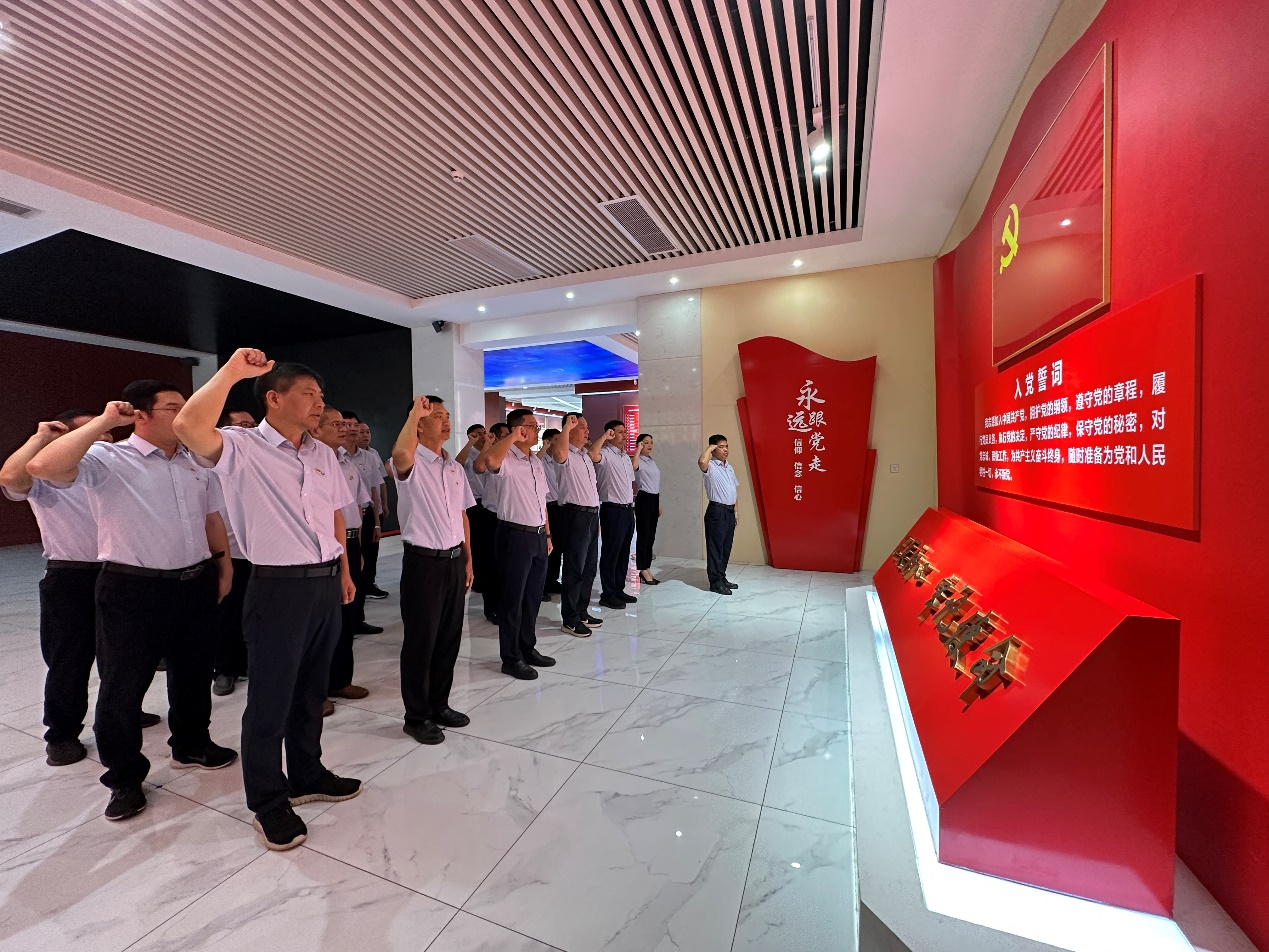 參觀活動結(jié)束后,由黨委書記、董事長鄭海強(qiáng)同志帶領(lǐng)黨員干部重溫入黨誓詞,大家面向黨旗、高舉右拳,以洪亮的聲音喚起入黨初心,銘記責(zé)任擔(dān)當(dāng)。通過此次參觀學(xué)習(xí)活動,讓大家對正風(fēng)、肅紀(jì)、促發(fā)展有了更深入的理解和認(rèn)識,紛紛表示要以廉政文化教育基地為教材,以時代楷模為榜樣,以反面教材為警鐘,自覺做到克己奉公、廉潔自律,永葆共產(chǎn)黨人清正廉潔的政治本色。(通訊員:鐘靖瑩)
